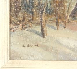 LOT 190 Pair Oil on Canvas Board signed S. (Sydney) Berne, 7 1/2" x 9 3/8", "Winter Scenes" Estimate: $100 - $150 Sold For: $90 Auction Date: Tuesday, October 29 2024 at 4:00 PM