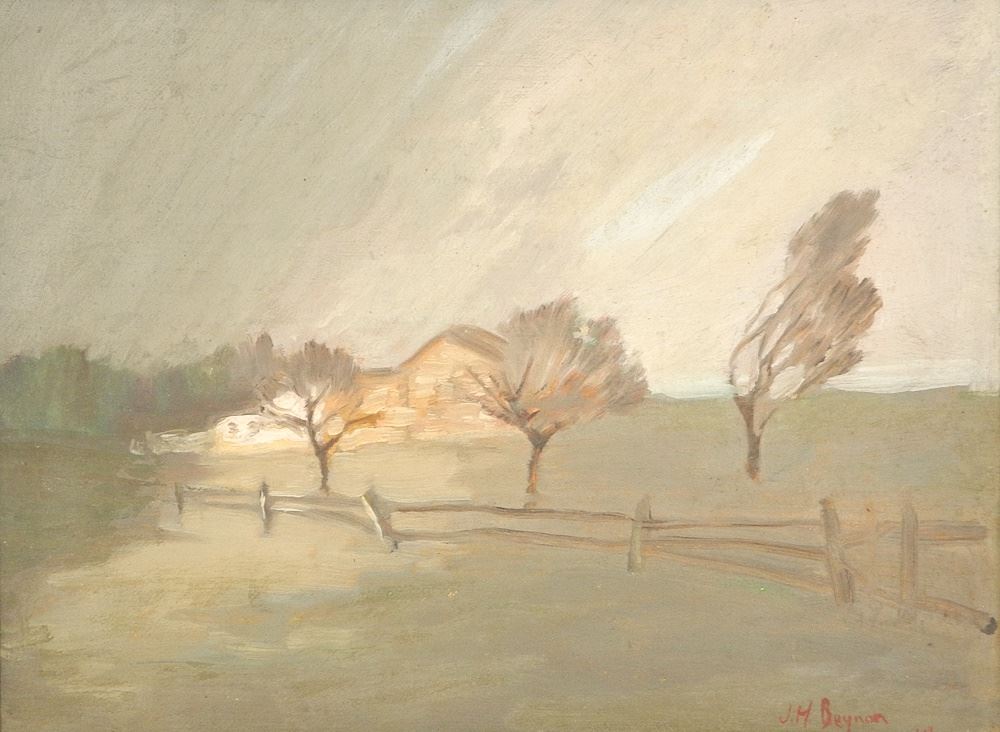 LOT 155 Oil on Board signed J.H. (John Hubert) Beynon, 8 1/2" x 11 3/8", "Rainy Day" & "Farm House" Estimate: $100 - $200 Sold For: $90 Auction Date: Tuesday, October 29 2024 at 4:00 PM