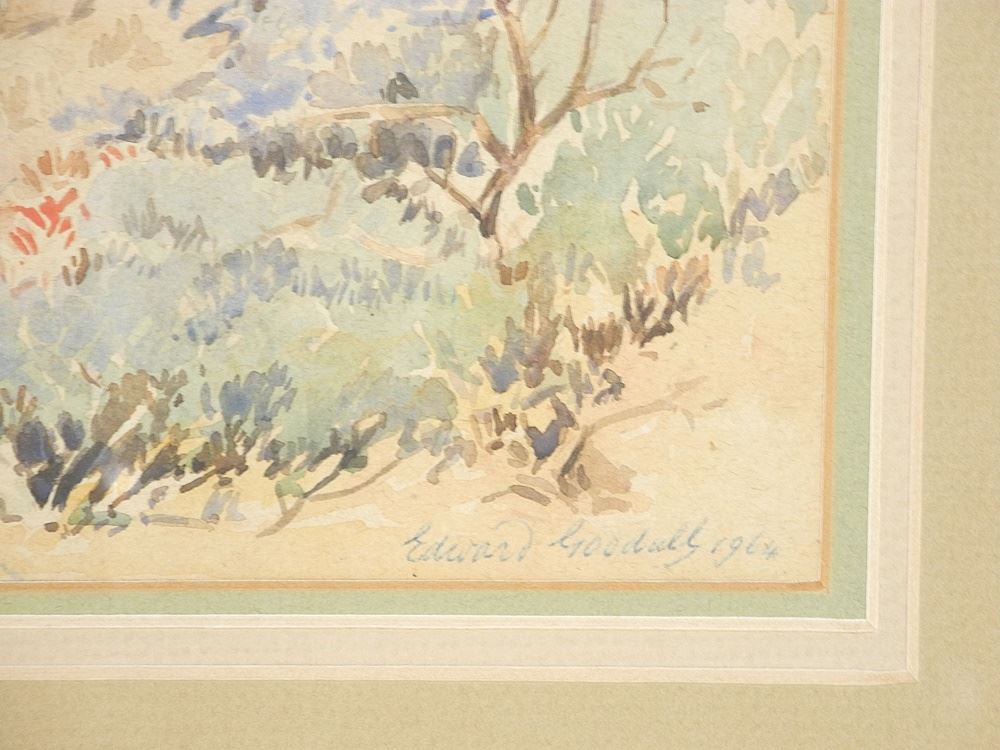 Watercolour signed Edward Goodall 1964, 14 3/4" x 18 1/8", "Coastal Scene with Cliffs".