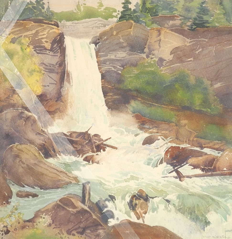 LOT 253 Watercolour signed Janet Middleton, 13 3/4" x 13 3/8", "Shuswap Falls" (glass noted). Estimate: $100 - $150 Sold For: $275 Auction Date: Tuesday, October 29 2024 at 4:00 PM