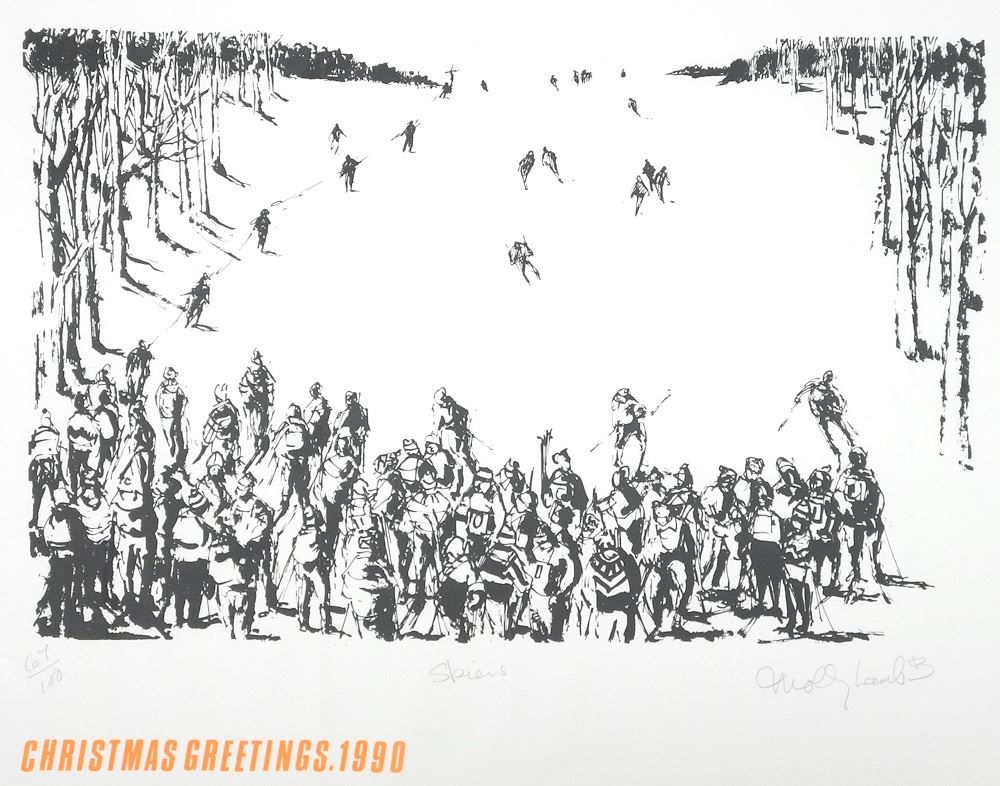 LOT 46 Lithograph signed Molly Lamb B. (Bobak), 16 1/2" x 21 1/2", "Skiers" #67/100. Estimate: $100 - $200 Sold For: $140 Auction Date: Tuesday, October 29 2024 at 4:00 PM