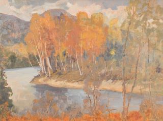 LOT 18 Oil on Masonite signed Y. (Yvette) Boulanger'80, 18" x 24", "Les Derniers Oranges". Estimate: $150 - $300 Sold For: $300 Auction Date: Tuesday, October 29 2024 at 4:00 PM