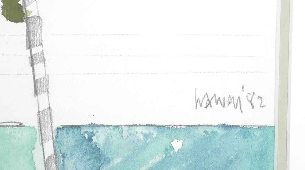 Sketch with Watercolour signed (Donald) Harvey'82, 8 3/4" x 11 3/4" , 'Palm Trees Horizon'.