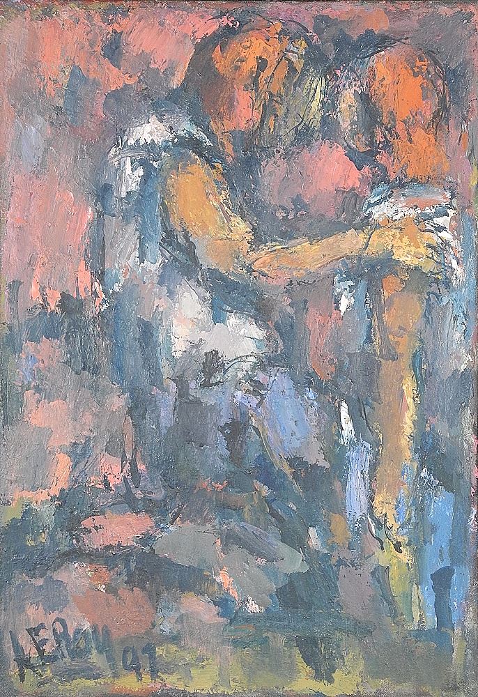 Oil on Canvas Mounted Board signed LeRoy (Jensen)'91, 21" x 14 3/4" , 'Figurative/For Bernie..