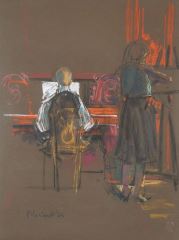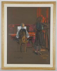 LOT 16 Pastel signed Plaskett (Joe)'63, 25" x 19", 'Pianos & Violin'. Estimate: $250 - $350 Sold For: $700 Auction Date: Tuesday, October 29 2024 at 4:00 PM