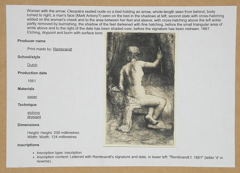 Drypoint Etching After Rembrandt, 8 1/4 x 5", "Woman with the Arrow".