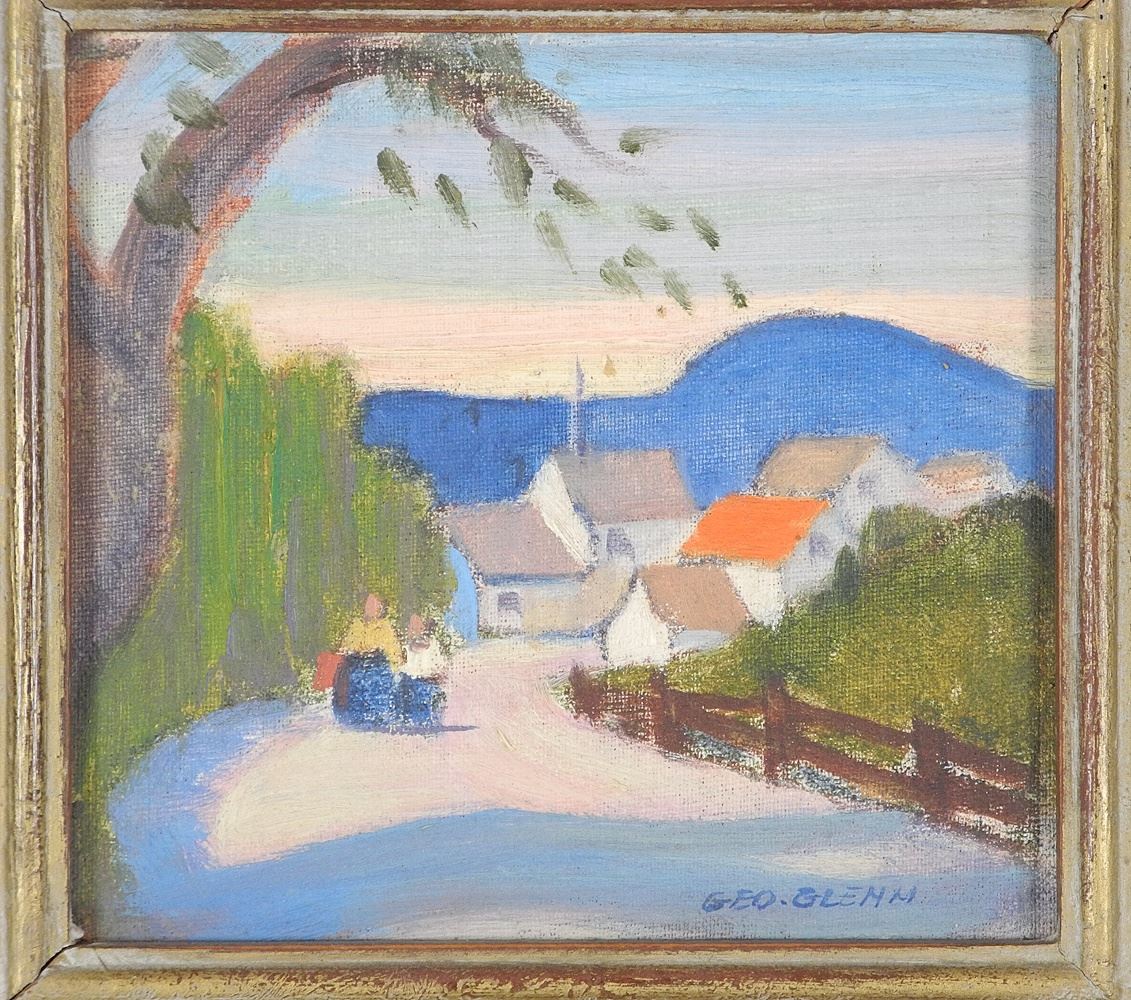 LOT 76 Pair of Oil on Panels signed Geo Glenn 1941, 4" x 4 1/4", 'Off to Church' & 'Village'. Estimate: $100 - $150 Sold For: $170 Auction Date: Tuesday, October 29 2024 at 4:00 PM