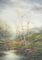 Oil on Canvas signed H. (Henry) Allan 1912, 19 1/2" x 13 1/2", "In Village of Nailsea, Som.".
