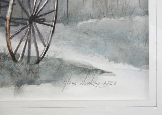 Watercolour signed Glenn Hawkins AFCA, 13 1/8" x 20", "Barn & Buggy".
