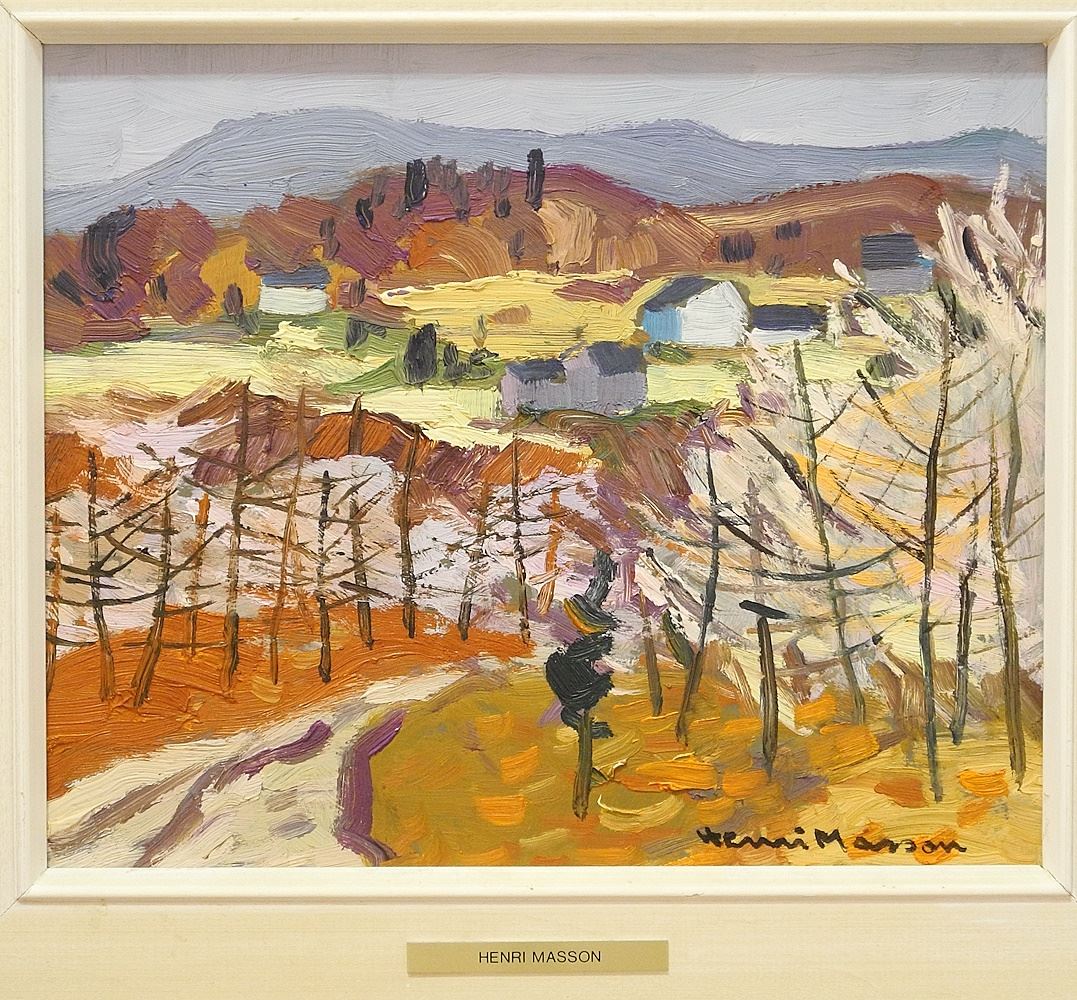 LOT 2 Oil on Masonite signed Henri Masson, 10" x 12", "Late Autumn Luskville Que.". Estimate: $400 - $600 Sold For: $600 Auction Date: Tuesday, October 29 2024 at 4:00 PM