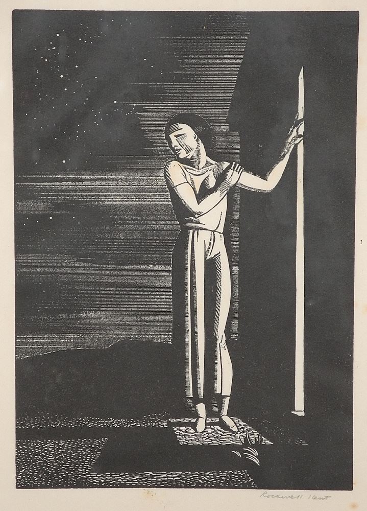 Wood Engraving signed Rockwell Kent, 7 1/2" x 5 1/2", "Starry Night" (foxing noted).