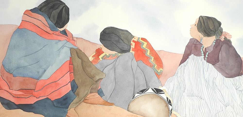 LOT 63 Watercolour signed (Irene) Klar'88, 14 7/8" x 41 1/4", "Three Southwest Women". Estimate: $300 - $500 Auction Date: Tuesday, December 17 2024 at 4:00 PM