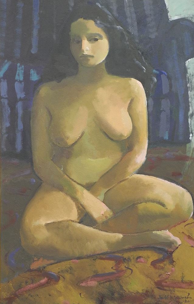 LOT 21 Oil on Board signed Jack Wilkinson' 80, 33 1/2 x 21 1/2", "Seated Girl". Estimate: $500 - $1,000 Sold For: $450 Auction Date: Tuesday, March 04 2025 at 4:00 PM