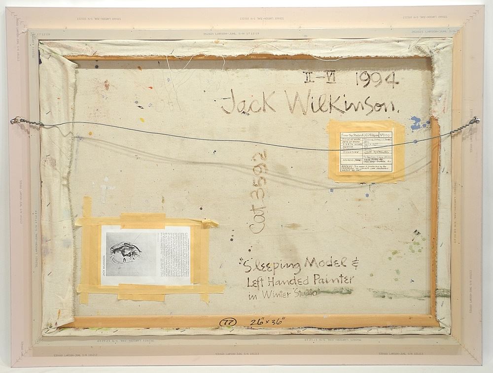 Oil on Canvas signed Jack Wilkinson' 94, 24" x 36", "Sleeping Model & Left Handed Painter...".