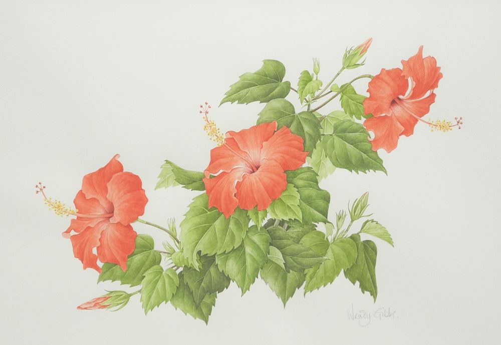 Two Watercolour signed Wendy Gibb, Larger 13 x 18 1/2", "Red Poppy" & "Hibiscus".