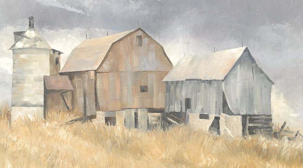 Oil on Canvas signed (Eddie) LePage, 20 x 24", "Barn Structures".