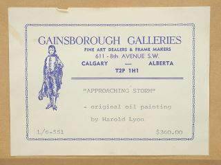 LOT 102 Acrylic on Board signed (Harold) Lyon, 9 1/2 x 13 1/2", "Approaching Storm". Estimate: $100 - $150 Sold For: $125 Auction Date: Tuesday, March 04 2025 at 4:00 PM