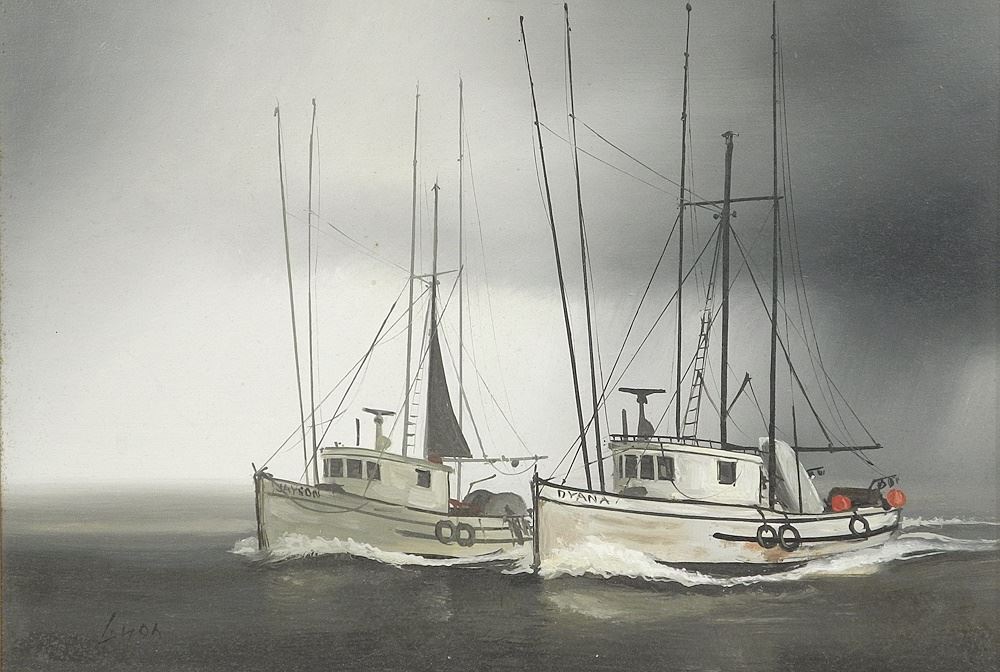 Acrylic on Board signed (Harold) Lyon, 9 1/2 x 13 1/2", "Approaching Storm".