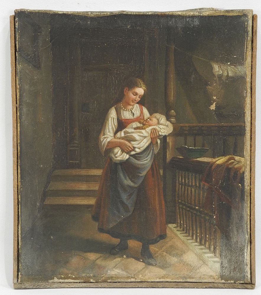 Pair of Oil on Canvas After F.E. Meyerheim, 10 x 8 5/8", "Mothers Joy".