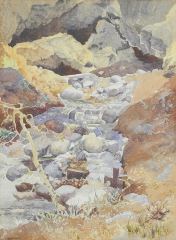 Watercolour signed J. (James) Dichmont, 14 7/8 x 11", "Waterfall Scene".