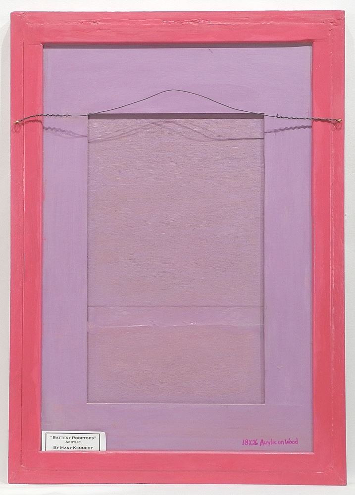 LOT 49 Acrylic on Wood Monogrammed MFK 02 (Mary Kennedy) 23 3/4" x 16 1/4", "Battery Rooftops". Estimate: $100 - $200 Sold For: $120 Auction Date: Tuesday, April 29 2025 at 4:00 PM