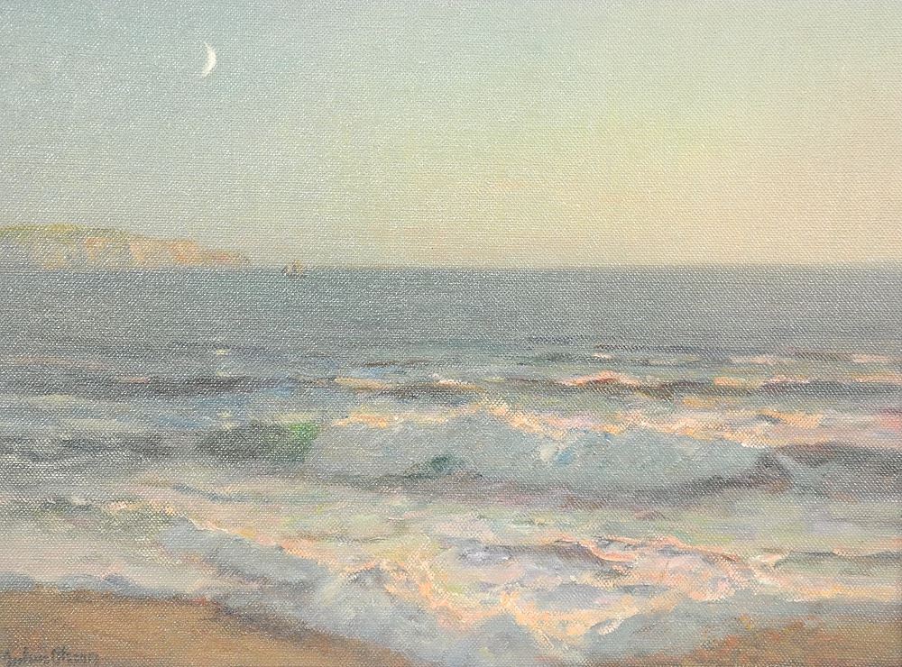 Oil on Linen Signed Julius Olsson, 18" x 24", "New Moon at St. Ives".