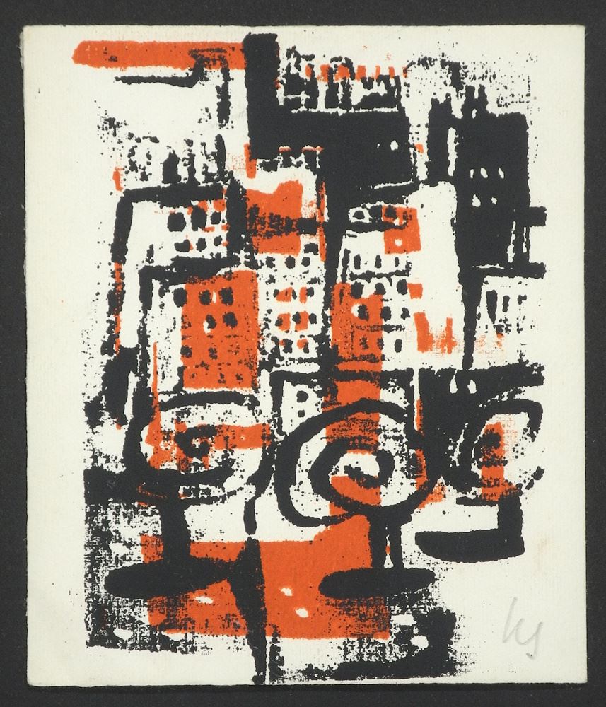 Colour Print Monogrammed H.S. (Herbert Siebner), 5 x 4 1/4", "Cityscape".
