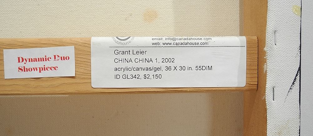 LOT 125 Acrylic & Gel on Canvas signed (Grant) Leier, 36 x 30", "China China 1" 2002. Estimate: $600 - $1,000 Auction Date: Tuesday, April 29 2025 at 4:00 PM