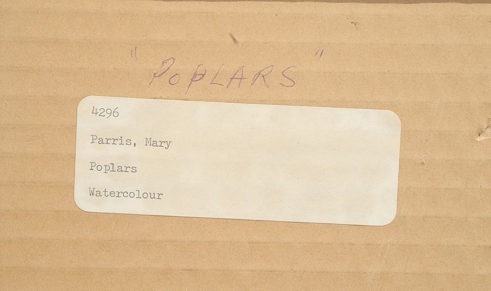 LOT 118 Watercolour signed Mary Parris, 18 x 24", "Poplars", 1976. Estimate: $80 - $140 Sold For: $50 Auction Date: Tuesday, April 29 2025 at 4:00 PM