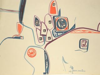 LOT 76 Watercolour on Paper signed Alex Janvier'64, 12 x 16", "Night Out" #64046 (as found). Estimate: $300 - $500 Sold For: $1,100 Auction Date: Tuesday, April 29 2025 at 4:00 PM