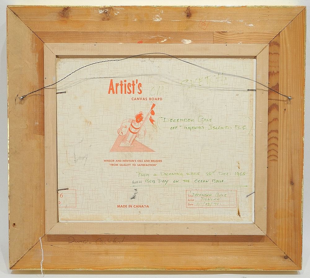 Oil on Artists Board signed Duncan (MacKinnon Crockford), 10 3/4 x 12 7/8", "December Gale...