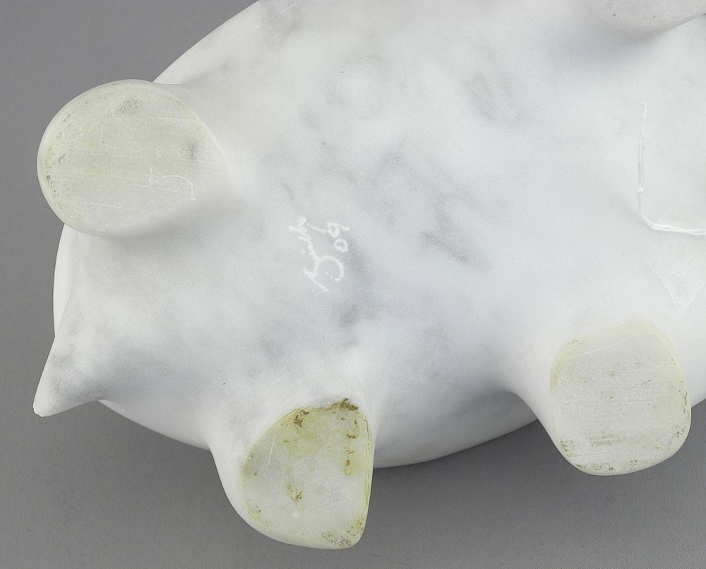 LOT 136 White Marble Sculpture signed (Michael) Binkley'09, 7 1/2"L, "Turtle". Estimate: $100 - $200 Sold For: $70 Auction Date: Tuesday, April 29 2025 at 4:00 PM
