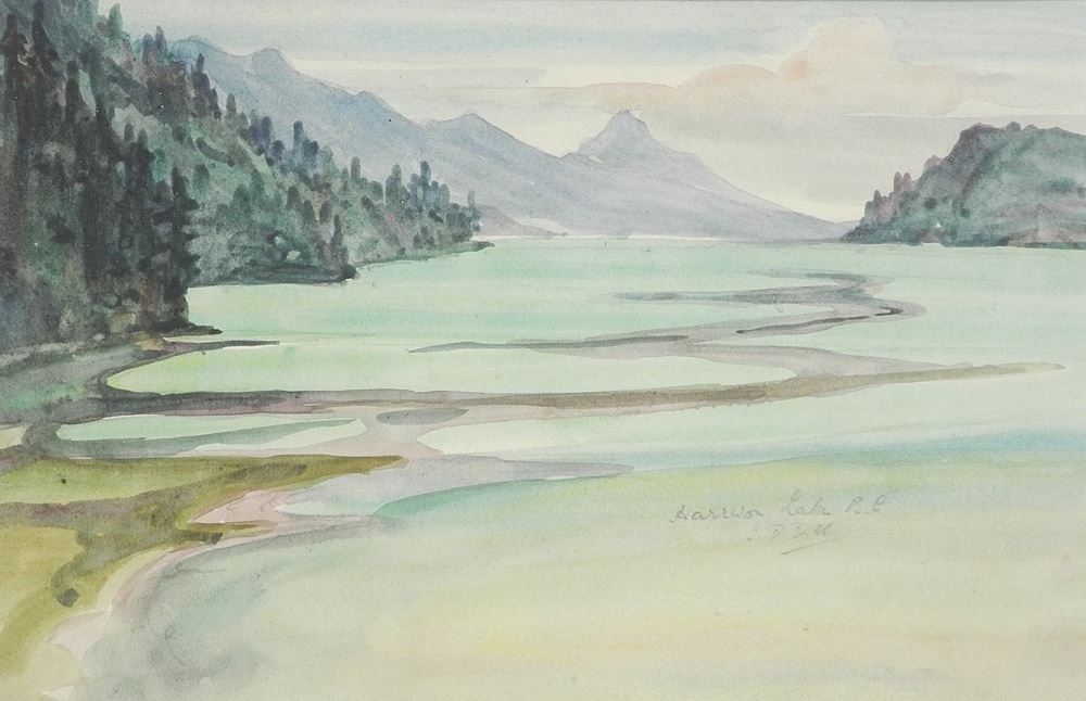 LOT 129 Watercolour Monogrammed I.D.D.H. (Ina Uhthoff), 7 x 10", "Harrison Lake". Estimate: $100 - $200 Sold For: $90 Auction Date: Tuesday, April 29 2025 at 4:00 PM