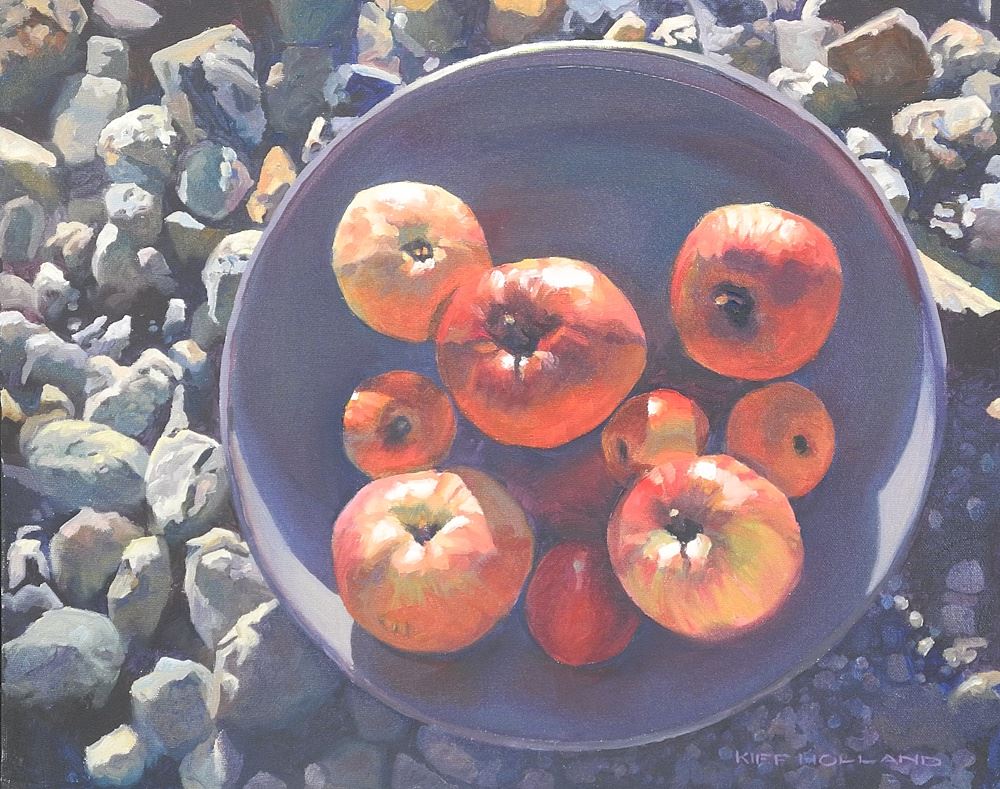 Oil on Canvas signed Kiff Holland, 16 x 20", "Pebble, Apples & Esther's Bowl".