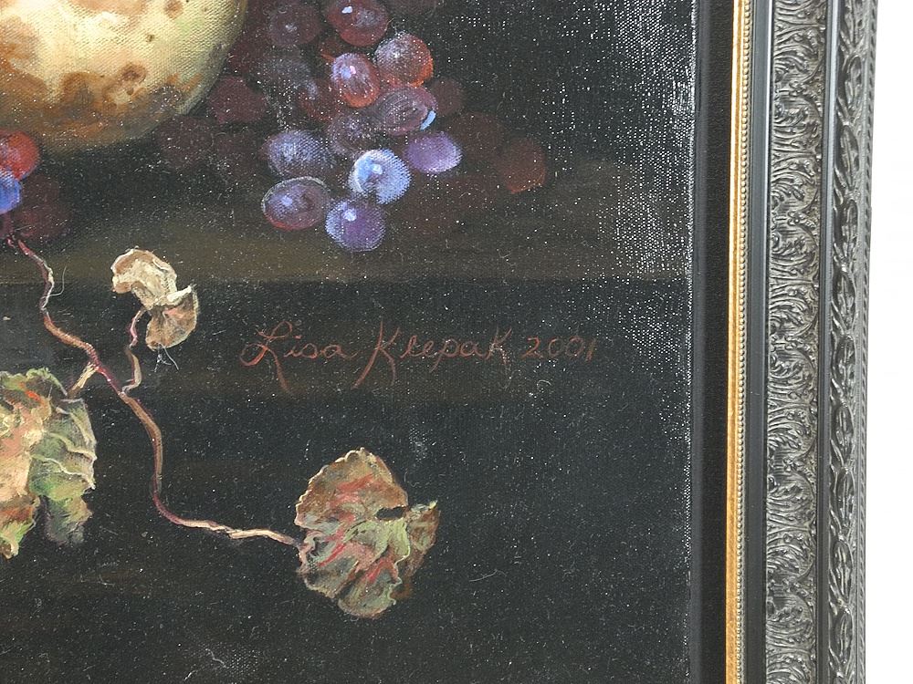 LOT 147 Oil on Canvas signed Lisa Klepak 2001, 40 x 36", "Dutch Style Still Life". (41) Estimate: $250 - $400 Sold For: $400 Auction Date: Tuesday, October 07 2025 at 4:00 PM