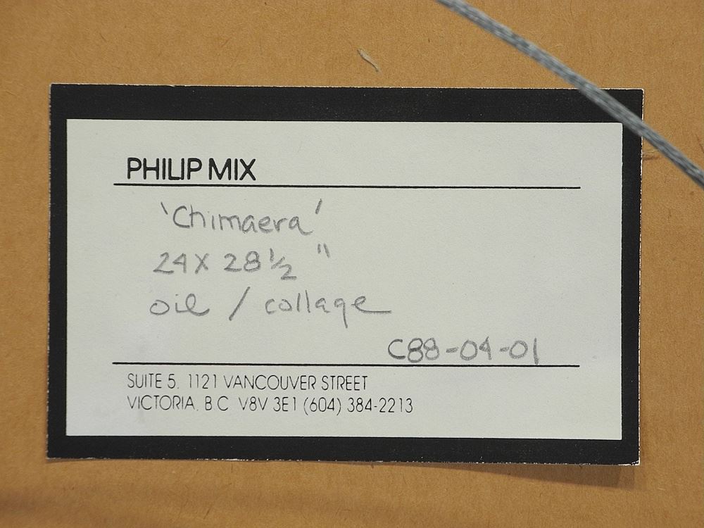 LOT 89 Oil Collage on Paper signed (Philip) Mix'88, 28 1/2 x 24", "Chimaera". Estimate: $100 - $200 Auction Date: Tuesday, October 07 2025 at 4:00 PM