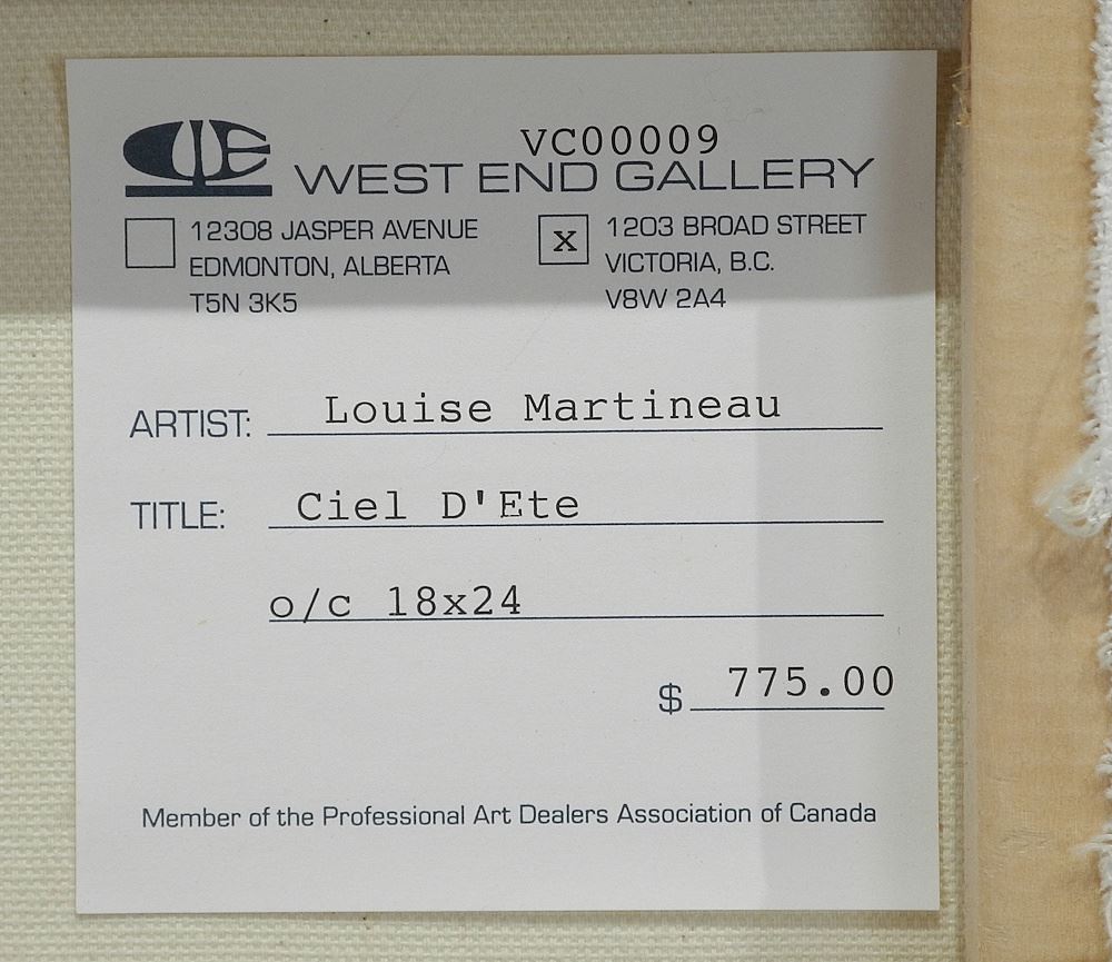 LOT 77 Oil on Canvas signed (Louise) Martineau 2000, 18 x 24", "Ciel D' Ete". Estimate: $400 - $600 Sold For: $600 Auction Date: Tuesday, October 07 2025 at 4:00 PM