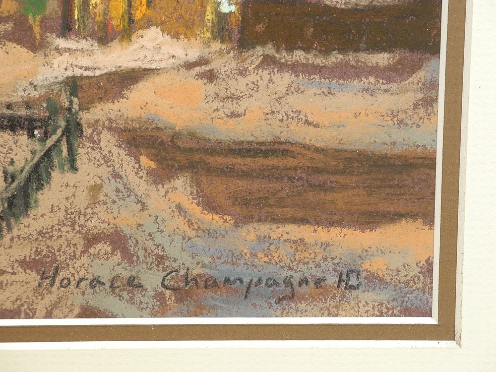 Pastel on Paper signed Horace Champagne, 8 x 10", "Restaurant Les Ave Canadiens.