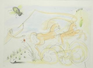 Etching signed Dali, 18 X 24 1/2", "The Coach & The Fly".