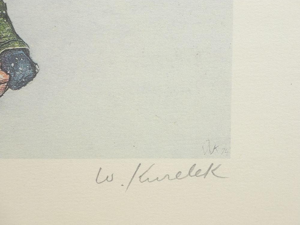 Colour Lithograph #197/300 signed W.Kurelek, 12 x 7 1/4", "Excitement Over 1st Heavy Snow".