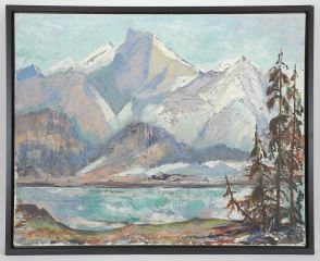 LOT 106 Oil on Canvas signed Grace Horspool, 24 x 30", "Waterfowl Lake". Estimate: $150 - $300 Sold For: $140 Auction Date: Tuesday, October 07 2025 at 4:00 PM