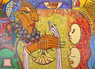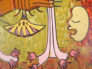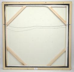 Acrylic on Canvas signed Tim Hazell, 47 1/2 x 47 1/2", "Stylized Figure Holding Flowers". (89)