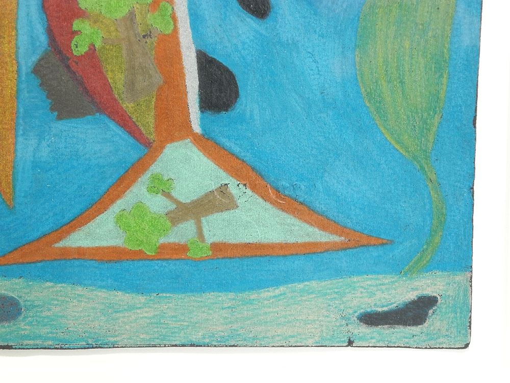 LOT 108 Colour Pencil Drawing by Pitseolak Qimirpik, 14 1/4 x 21 1/4", "Earth & Climate Fish" (creased). ( Estimate: $150 - $300 Auction Date: Tuesday, October 07 2025 at 4:00 PM