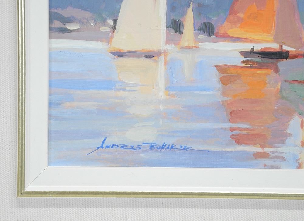 LOT 30 Oil on Board signed Andres Bohaker, 7 1/2 x 9 1/2", "Sailboats". Estimate: $150 - $250 Sold For: $180 Auction Date: Tuesday, October 07 2025 at 4:00 PM
