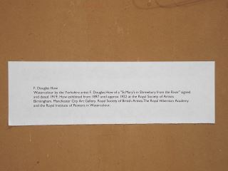 LOT 53 Watercolour signed F.D.(Douglas) How 1919, 14 1/8 x 10", "St.Mary's Shrewsbury From the River" Estimate: $50 - $100 Sold For: $50 Auction Date: Tuesday, October 07 2025 at 4:00 PM
