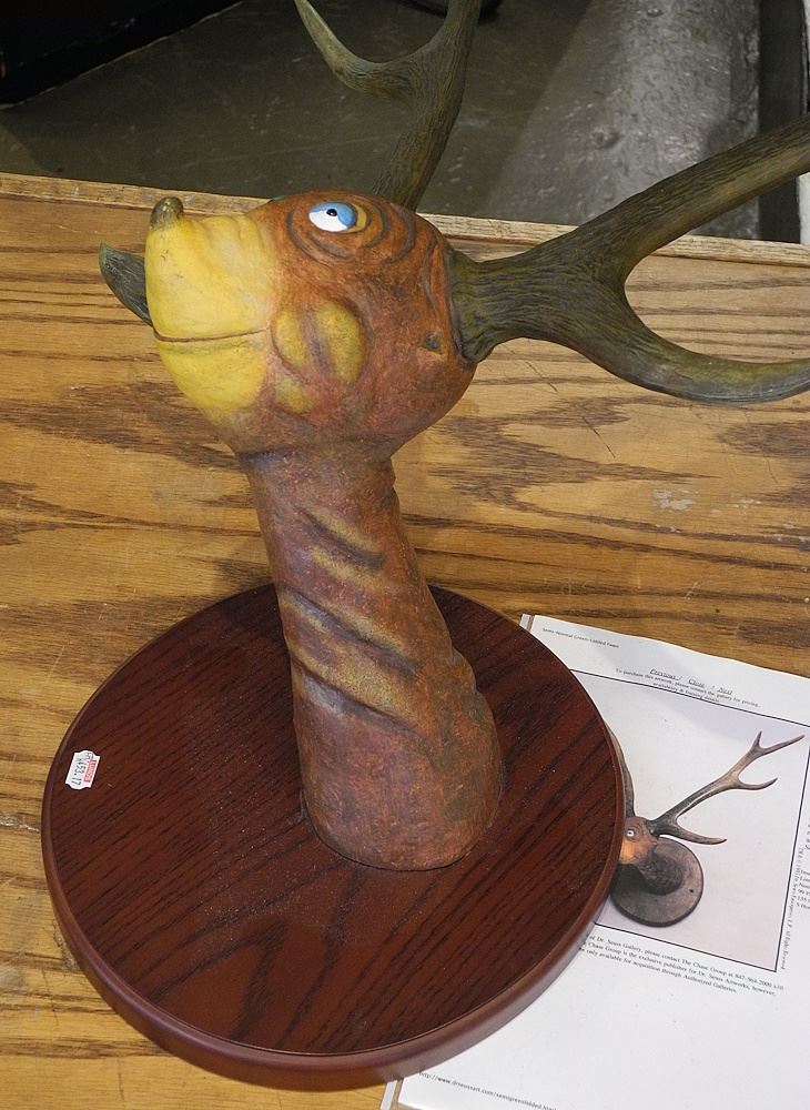 Resin & Wood Sculpture T.Seuss Geisel, 14 x 7 x 9 1/2", "Semi Normal Green Lidded Fawn".