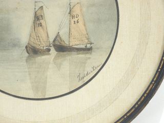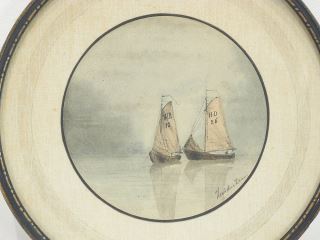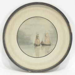 LOT 76 Watercolour signed VanderLaer, 4 1/4"d, "Fishing Boats". Estimate: $80 - $120 Sold For: $90 Auction Date: Tuesday, October 07 2025 at 4:00 PM