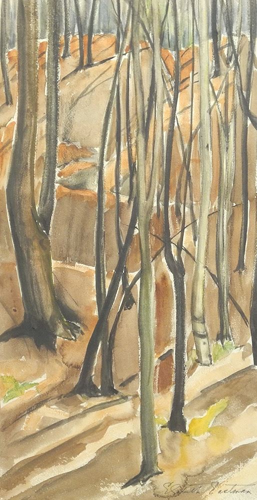 LOT 110 Watercolour signed Elizabeth Eastman 21 x 11", "Hillside Woods". Estimate: $80 - $120 Sold For: $60 Auction Date: Tuesday, October 07 2025 at 4:00 PM