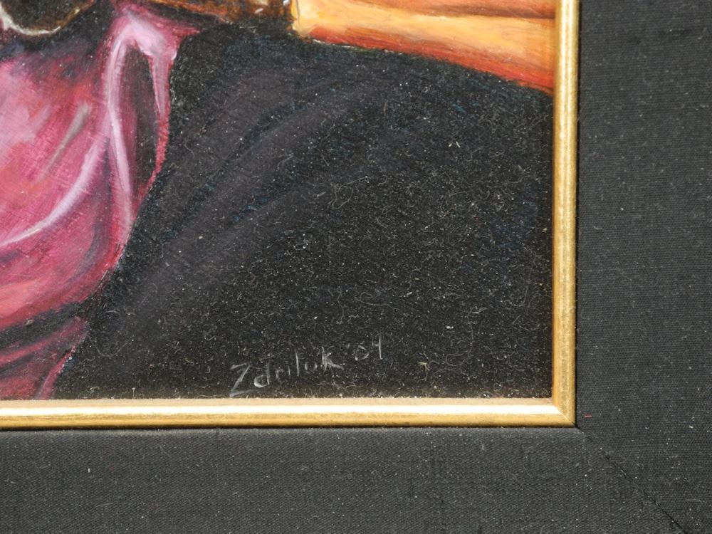 LOT 4 Oil on Board signed (Ron) Zdriluk, 9 1/2 x 7 1/2", "Madame". Estimate: $150 - $250 Sold For: $300 Auction Date: Tuesday, October 07 2025 at 4:00 PM