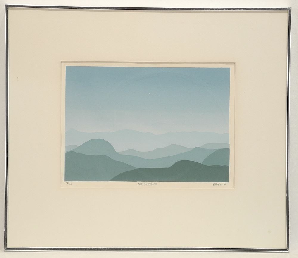 LOT 126 Serigraph signed B.(Brenda) Bysouth, 7 5/8 x 10 1/2", "The Highlands" #12/20. Estimate: $60 - $100 Sold For: $50 Auction Date: Tuesday, October 07 2025 at 4:00 PM